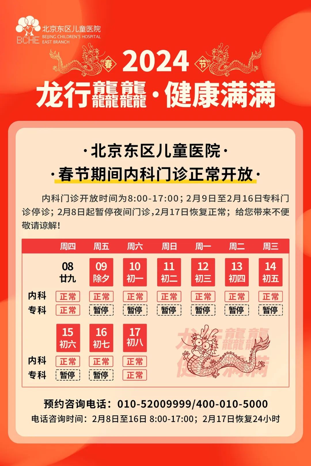 为保障孩子就诊无忧,luck新利为宝贝提供7*24小时“全时”守护!其中,小儿内科开放24小时门诊。外科小夜门诊开诊时间为:17:00至21:00。医生出诊信息可能临时调整,预约咨询或了解详细出诊信息请致电010-52009999/400-010-5000。您也可登录luck新利官网(www.bche.cn),点击“出诊信息”查看相关信息。