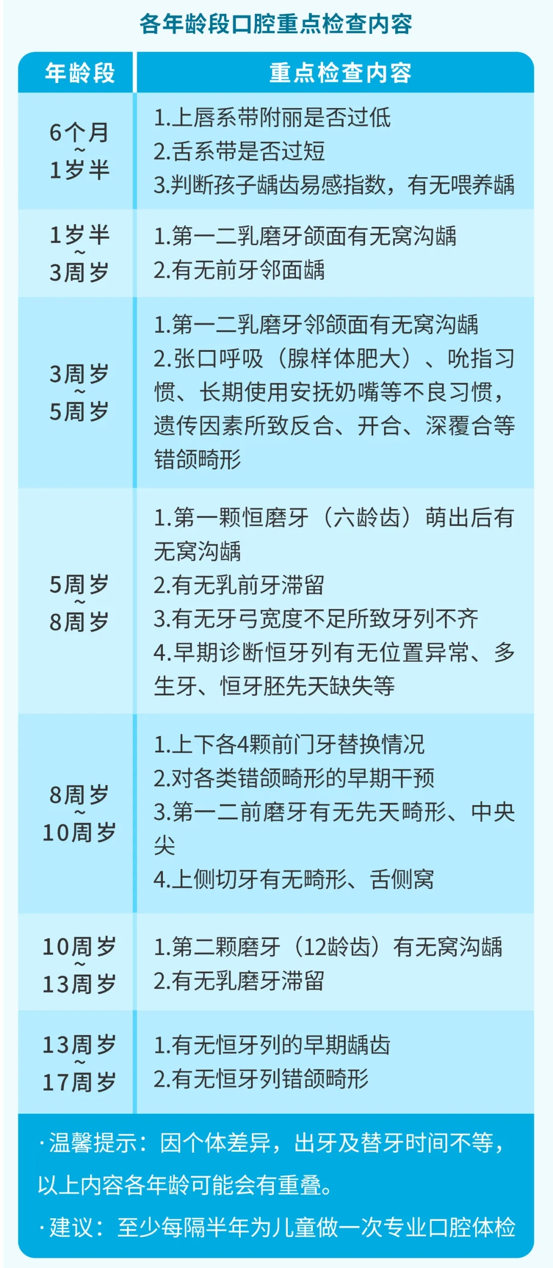 牙齿是宝宝从小打好健康基础的关键,口腔检查是对牙齿、牙龈和口腔进行一次彻底检查,诊断潜在的疾病并预防可能的疾病。每位爸爸妈妈都应该为孩子预约一次口腔常规检查,建立口腔健康档案,从小关注宝宝的口腔健康。