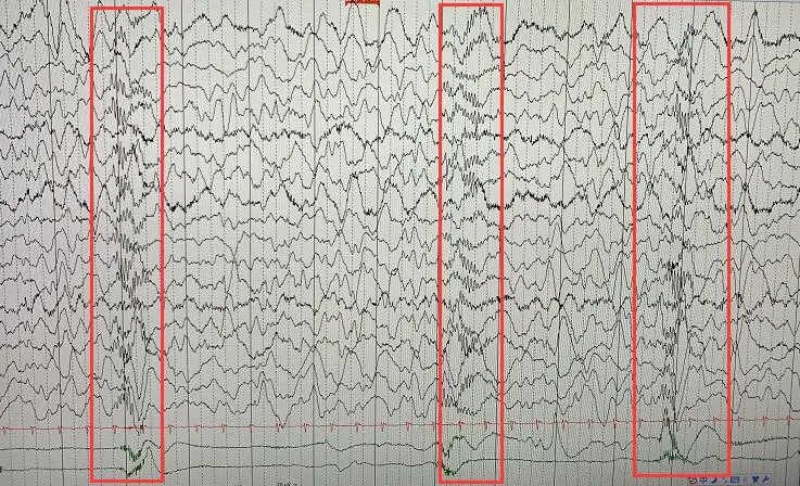 抓到了! 在脑电图检查1小时左右,可可睡醒了,脑电监测显示,可可出现这些“小动作”时,脑电波呈现