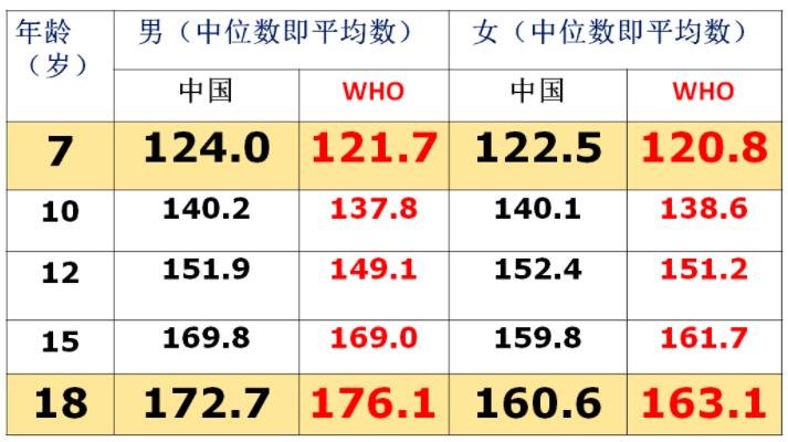 为什么强调“成年身高”,也就是“终身高”?蒋竞雄博士展示了一张我国0~18岁儿童年龄身高标准曲线和世界卫生组织同年龄的标准曲线对比图。