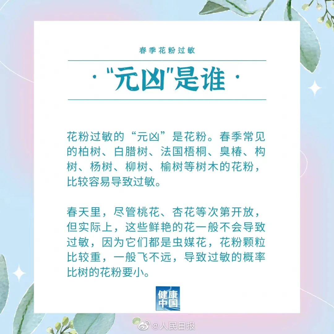 容易引起花粉过敏的树木,花期集中在 3~5 月,如杨树、柏树、松树、桦树、杉树、法国梧桐等。