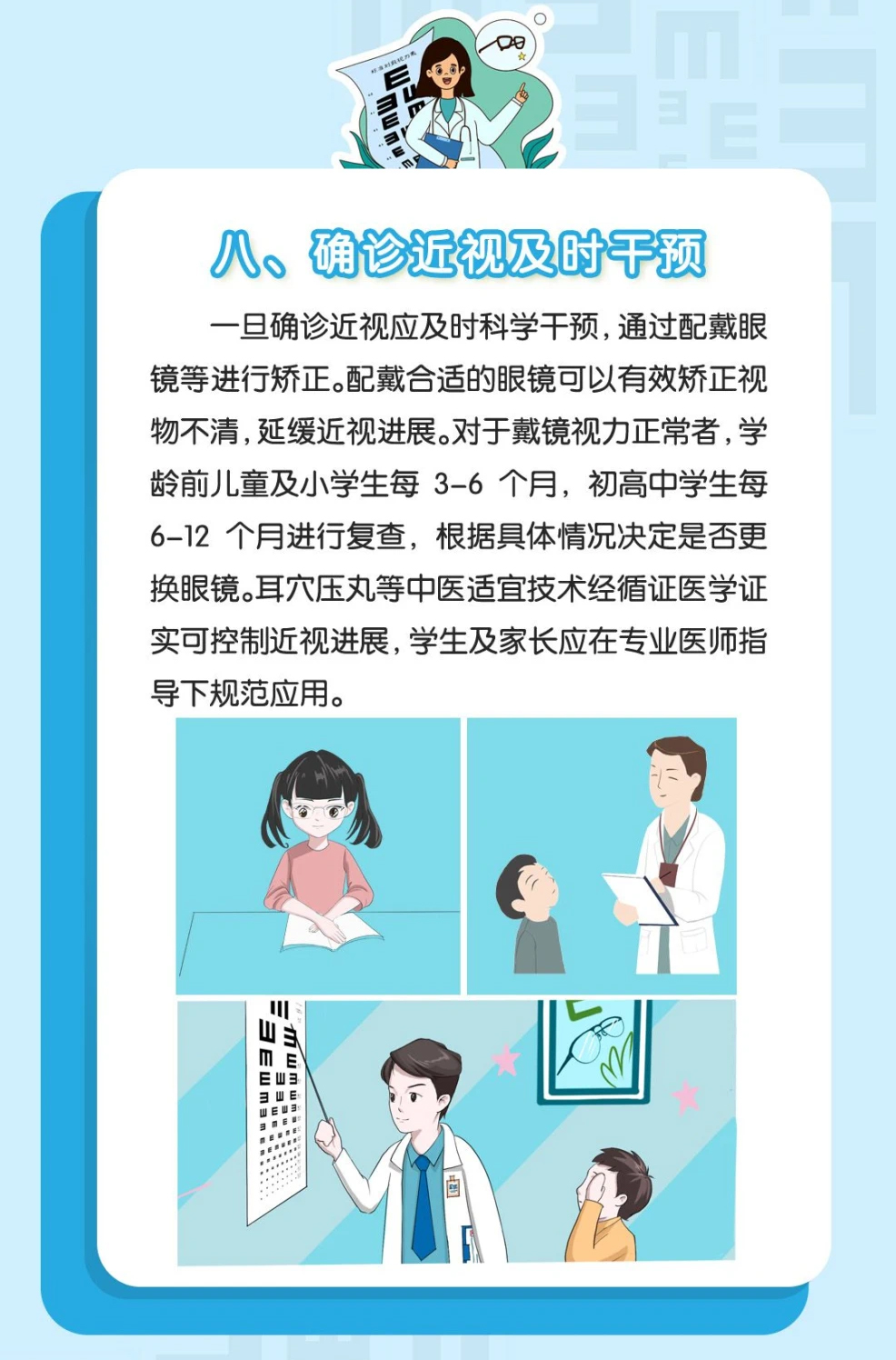 所以,对于已经近视的孩子,当务之急就是要做好近视防控,控制每年的度数增长,尽量避免孩子发展为高度近视。而对于还没有近视的孩子,一定要定期做眼健康体检,了解孩子的「近视风险」,做到防患于未然,更有针对性的近视防控。