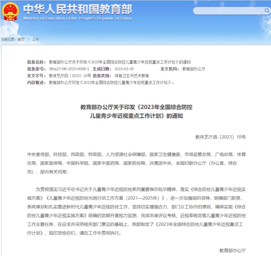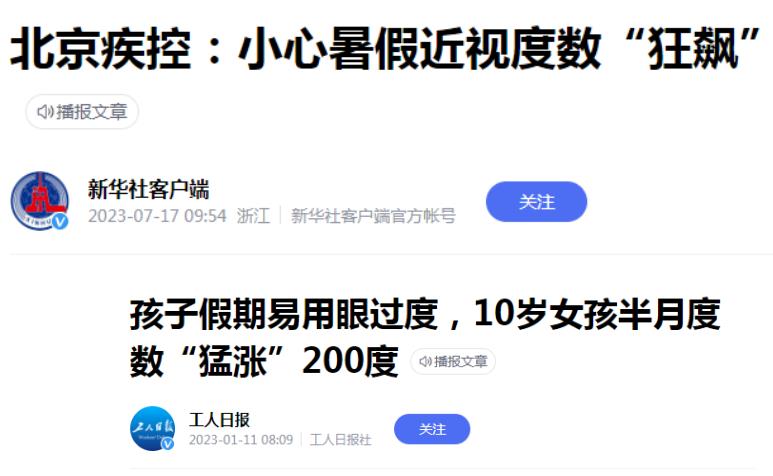 儿童青少年近视已成为中国视力损伤的主要原因,超八成高中生近视。对于儿童青少年来说,近视防治的“主战场”必须要提前,要将近视防控“关口”前移到幼儿园和学龄前期,避免小学时期近视的高发势态。