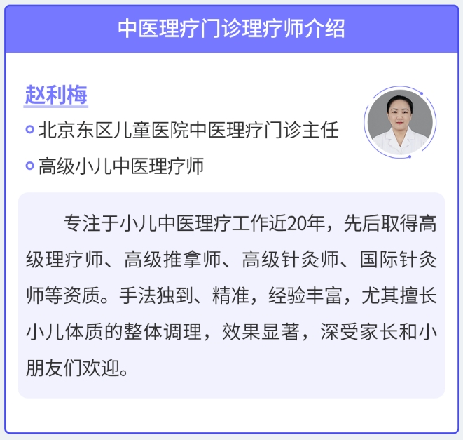 赵利梅主任表示,中医讲究望闻问切,推拿讲究“辨证施治”,即根据每个孩子的个体情况为孩子制定个性化的推拿方案,有时还会配合耳穴贴、刮痧等其它中医手法来综合调理。比如同样是消化不良,也分为脾胃虚弱症、饮食积滞症、肝胃不和症、湿浊痞阻症等,推拿手法都是不一样的。如果家长在家对孩子进行推拿后孩子不适、没有好转或继续加重的话,建议及时就医。