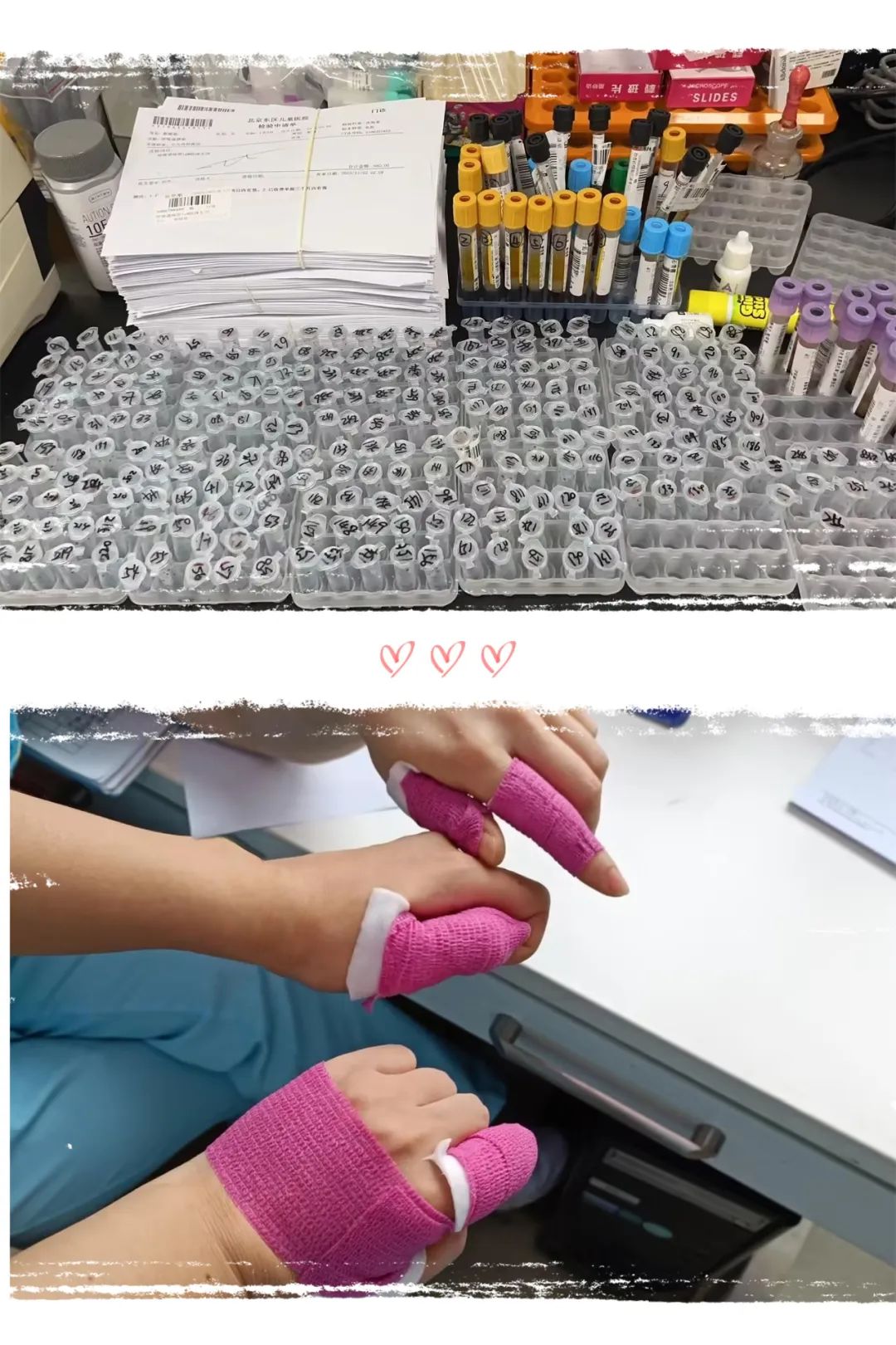在新利快乐彩18luck检验科,可开展的检查项目包括生化、免疫、临检三大类。luck新利检验科主任张立梅介绍,每个孩子的病情不同,所需要的检查项目也会不同。呼吸道疾病高峰期,检验科工作量“暴增”,采血人数是高峰期前的4倍以上。给孩子采集指尖血时,遇到病情复杂,检查项目多的情况时,一个孩子有可能需要采3-4管、甚至6管(1管100微升)血,采血技师既要保证采血质量,还要保证每次给孩子只扎一次针,不扎第二次。遇到危急值或稍微异常的检测结果,检验技师还要手工推片复检,在显微镜下重新观察细胞形态是否存在异常,以确保机器检测结果的准确性。个别时候遇到情绪不稳定的小朋友,采血的工作人员会被小朋友突然的动作抓伤或挠伤,但是大家都能理解孩子,“大人生病的时候都会很无助,更别说孩子了,希望孩子的病赶紧好起来。”张立梅说。