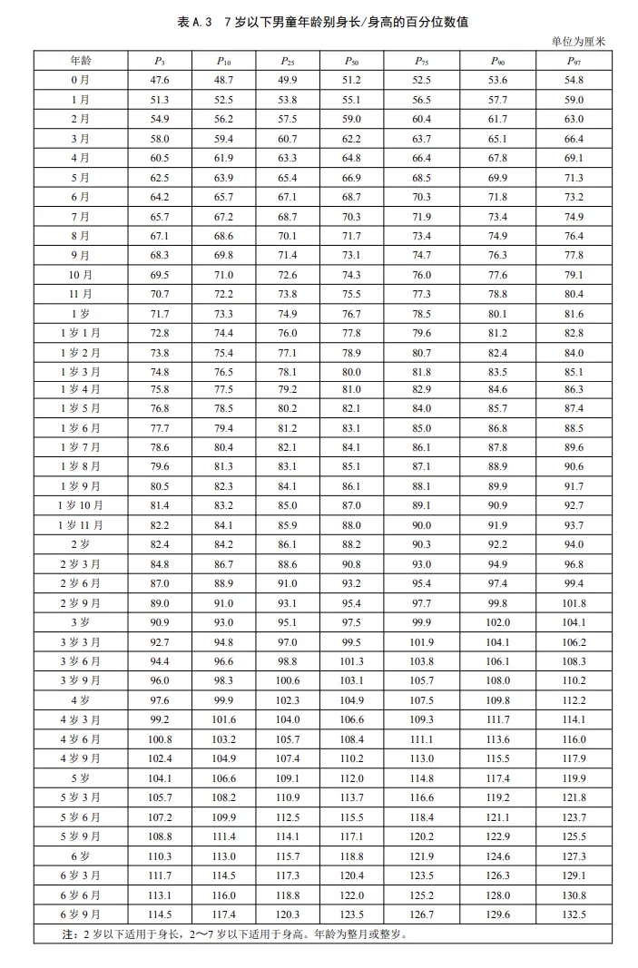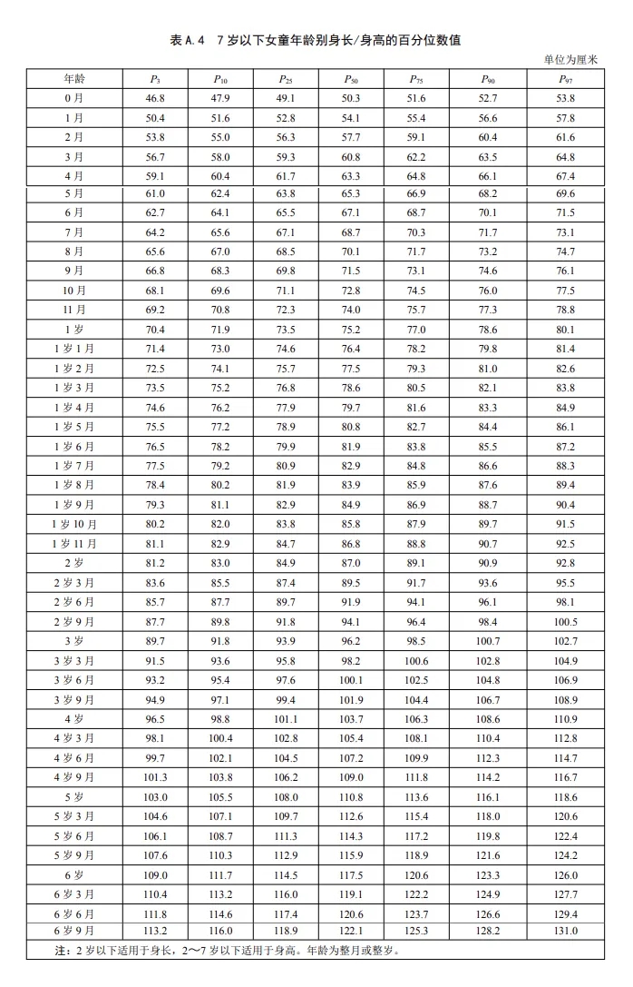家长们可以参照一下生长标准,看看自家孩子的身高处于什么水平。