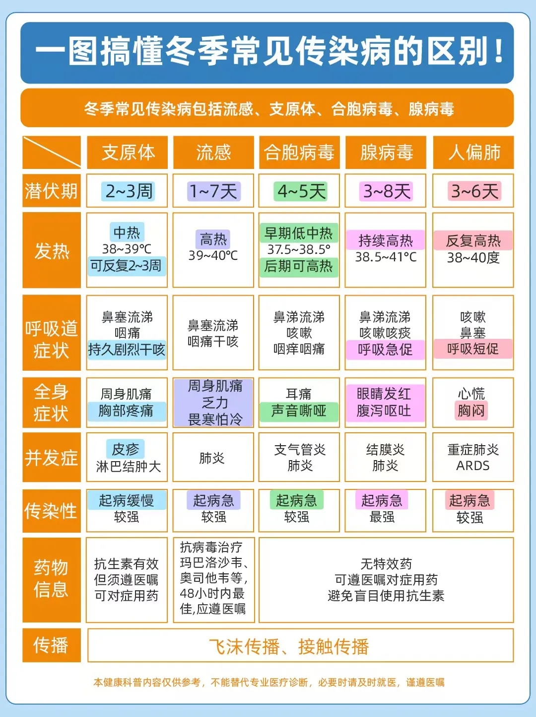 感冒、流感、肺炎支原体感染,上呼吸道感染的症状感觉都是咳嗽发烧,但它们的危害天差地别!普通感冒一般症状较轻,通常5-7天可自愈,并发症比较少。