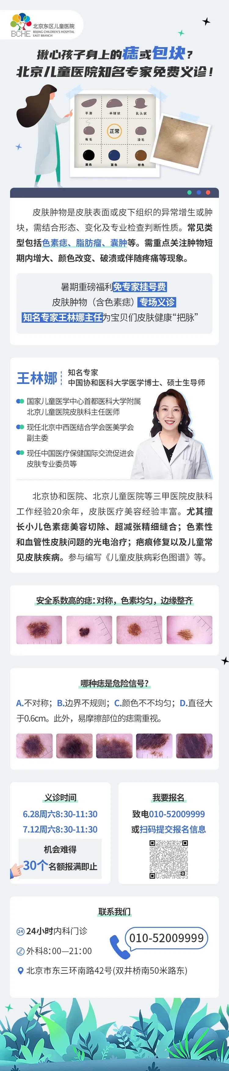 若孩子皮肤出现快速生长的红色或棕色结节,尤其是面部,应尽早就诊。