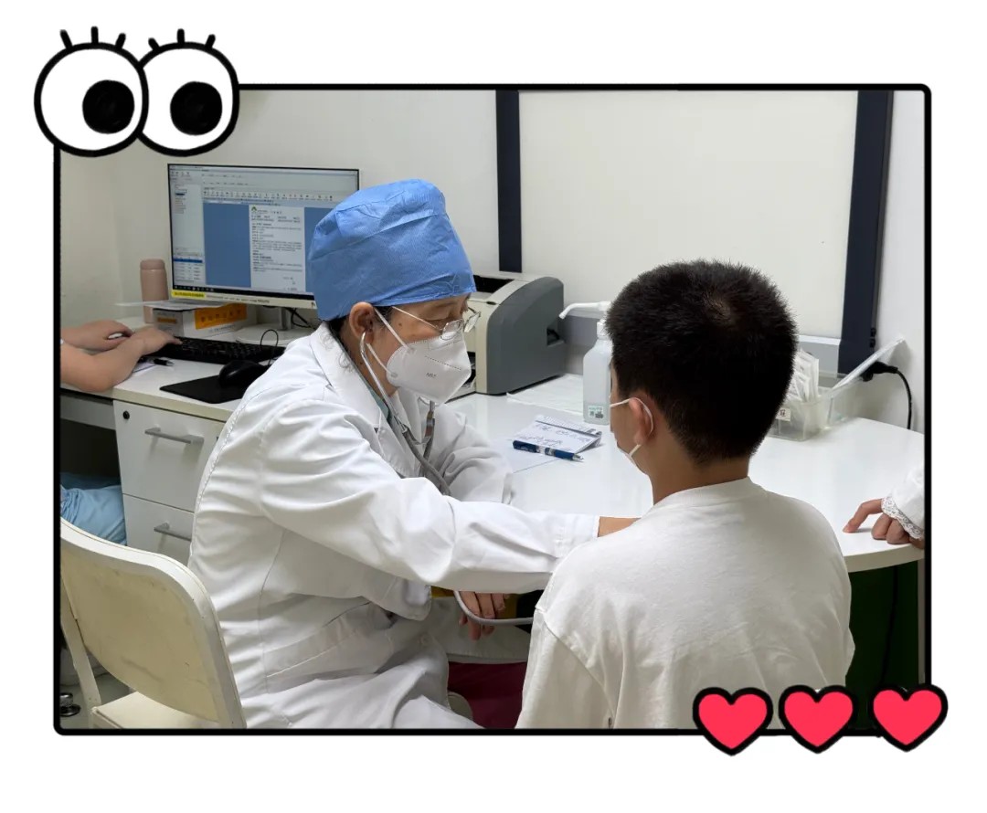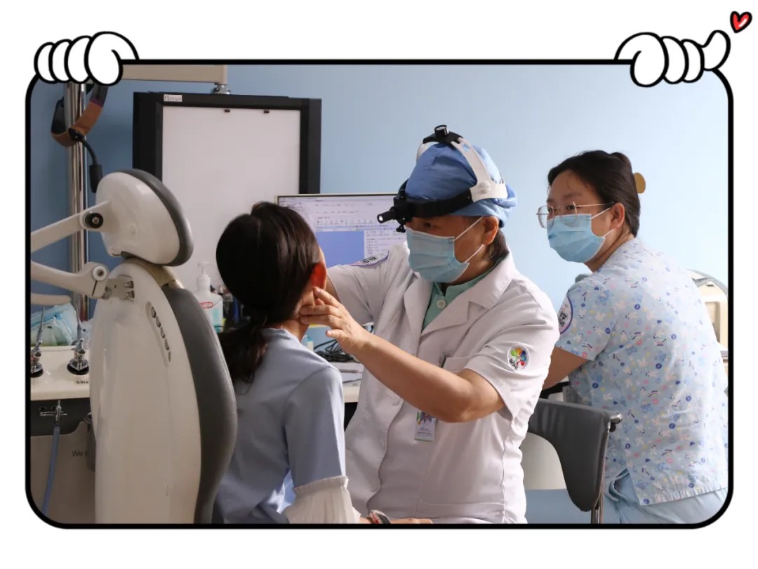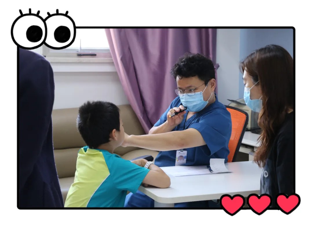 耳鼻喉知名专家赵绯主任细致地给孩子做检查