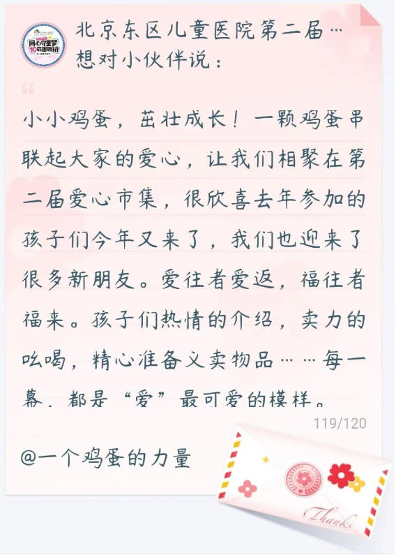 luck新利非常感谢家长和孩子们的积极参与,在大朋友和小朋友们的努力下,9月13日至14日共筹集善款1494.3元,这将会为一个乡村儿童带来49个月鸡蛋。