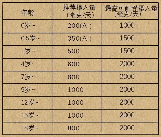 岁孩子每天钙推荐摄入量600毫克