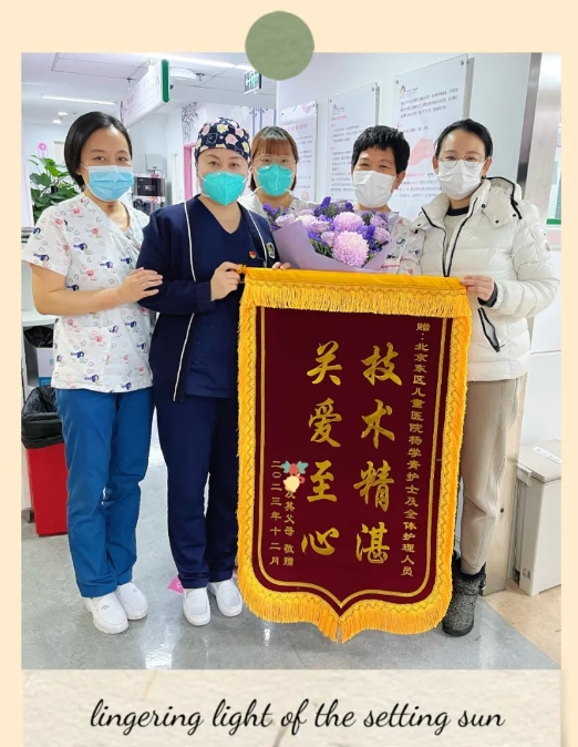 前不久,住院部住进了一个4岁多的小女孩儿,周国玲护士长介绍,她妈妈说之前在别的医院治疗时,医生都说她家孩子不好扎,就都没输液。所以希望尽量不输液治疗,要不孩子扎针太遭罪。刘鑫医生根据病情,还是觉得输液治疗更好。护士长看了孩子的血管条件,觉得还好,和家长沟通后,家长表示同意。护士一边柔地哄孩子转移注意力同时,她的针也顺利扎进了患儿纤细的血管,“一针见血”。家长特别高兴,出院时给护士长送来了一面锦旗表示感谢和认可。