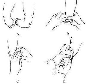 想要矫正孩子的足部畸形,可以采用手法矫正