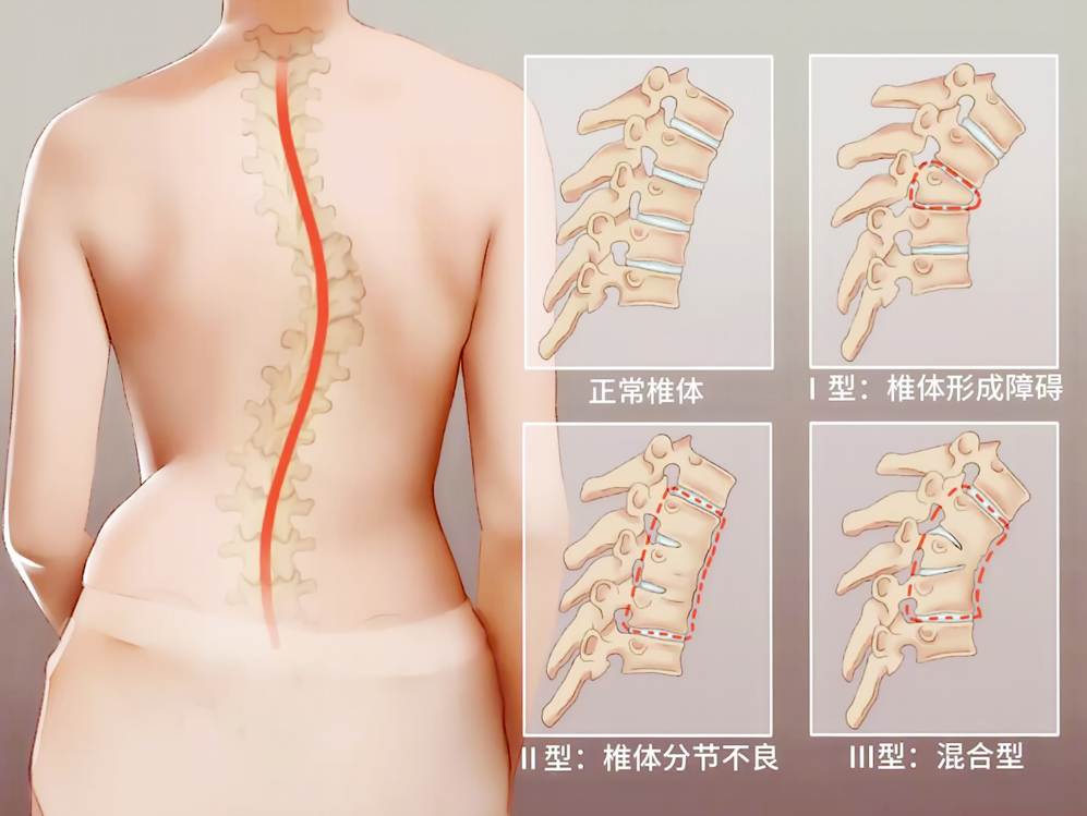根据脊柱发育障碍,常可分为三类 Ⅰ 型(椎体形成障碍)、Ⅱ 型(椎体分节不良)和 Ⅲ 型(混合型)。分类主要用于明确病因,指导治疗。